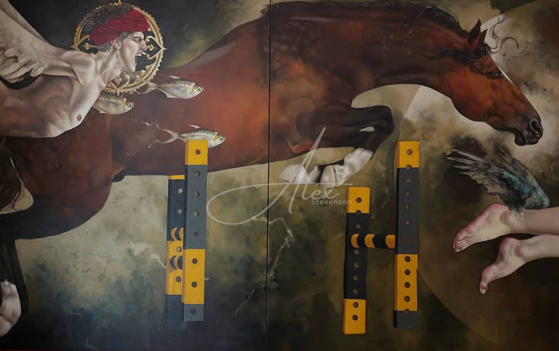 Con más de 27 años de experiencia en la vida artística, Alex Stevenson es considerado uno de los mayores exponentes del arte colombiano. Va llevando a lo sublime la estructura del cuerpo humano en movimiento, encarnando personajes surrealistas con expresiones anatómicamente dramáticas, que a su vez, caracterizan cada una de sus obras definidas generalmente en la técnica del óleo sobre lienzo.