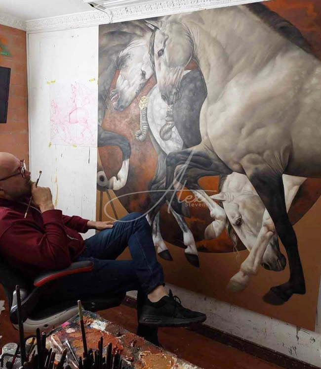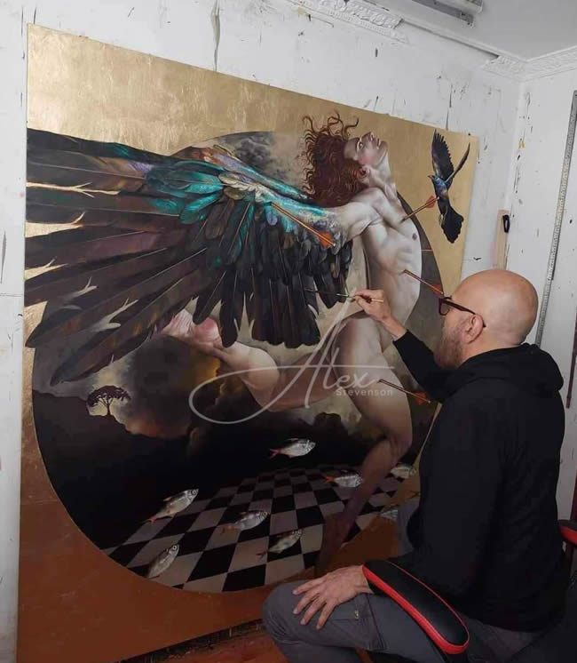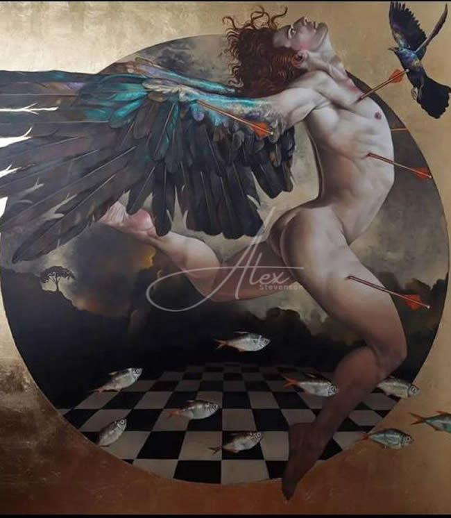 Con más de 27 años de experiencia en la vida artística, Alex Stevenson es considerado uno de los mayores exponentes del arte colombiano. Va llevando a lo sublime la estructura del cuerpo humano en movimiento, encarnando personajes surrealistas con expresiones anatómicamente dramáticas, que a su vez, caracterizan cada una de sus obras definidas generalmente en la técnica del óleo sobre lienzo.